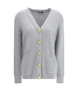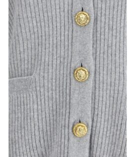Balmain Gray Fleece Wool Cardigan