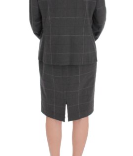 BENCIVENGA Gray Checkered Cotton Blazer Dress Set Suit