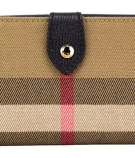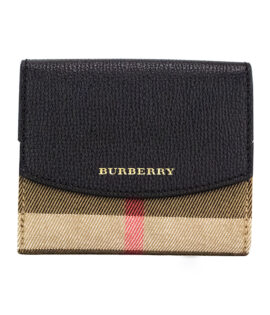 Burberry Luna Black Grained Leather House Check Canvas Coin Pouch Snap Wallet