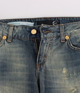 Cavalli Blue Wash Torn Cotton Straight Fit Jeans