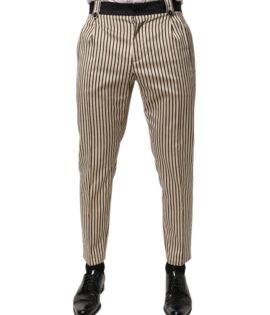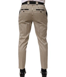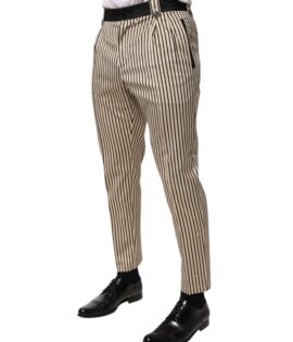 Dolce & Gabbana Beige Black Striped Cotton Slim Fit Trousers Pants