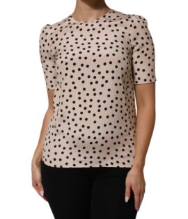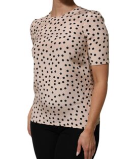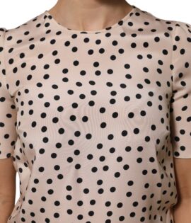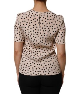 Dolce & Gabbana Beige Black Polka Dot Silk Short Sleeve Blouse Top