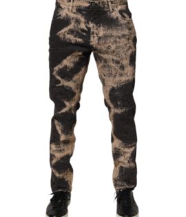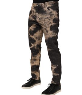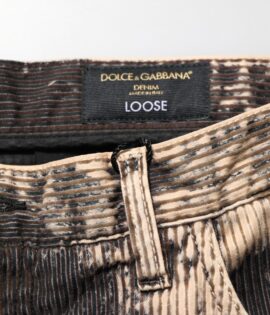 Dolce & Gabbana Beige Black Corduroy Tie-Dye Cotton Blend Pants