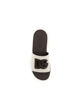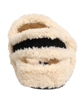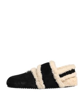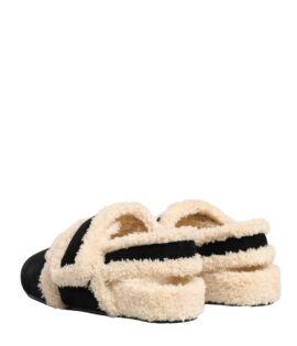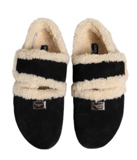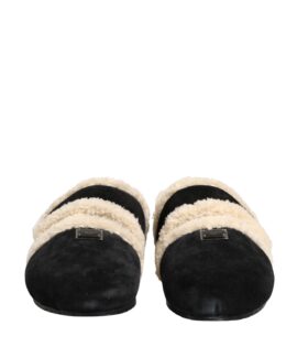 Dolce & Gabbana Beige Black Faux Fur Flats Men Sandals Shoes