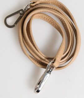 Dolce & Gabbana Beige Calfskin Leather Round Logo Hand Mirror Holder