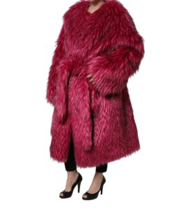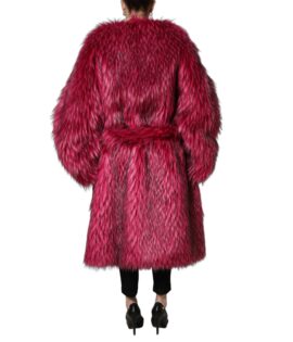 Dolce & Gabbana Fuchsia Belted Faux-Fur Trench Coat Jacket