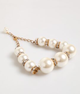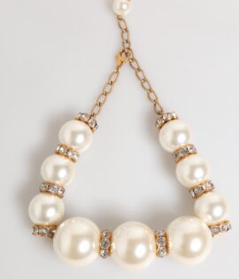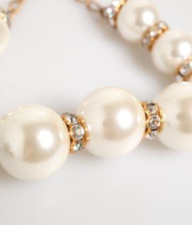 Dolce & Gabbana Gold Brass Faux Pearl Crystal Statement Luxury Jewelry Necklace