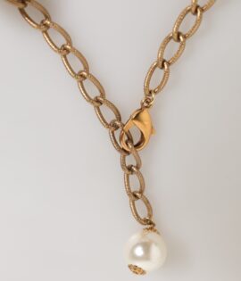 Dolce & Gabbana Gold Brass Crystal Pearl Tree Pendant Charm Necklace