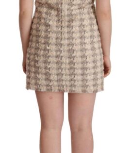 Dolce & Gabbana Beige Checkered Sleeveless Mini Shift Dress