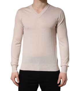 Dolce & Gabbana Beige Cashmere V-neck Men Pullover Sweater