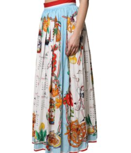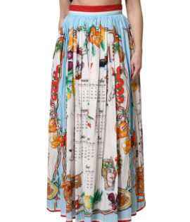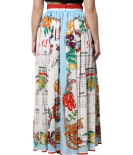 Dolce & Gabbana White Calendar Print Cotton Gathered Maxi Skirt
