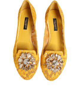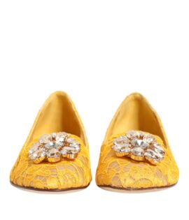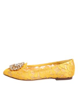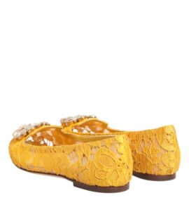 Dolce & Gabbana Yellow Taormina Lace Crystals Flats Shoes