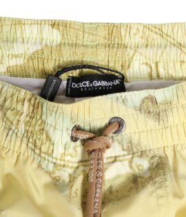 Dolce & Gabbana Yellow World Map Polyester Elastic Waistband Swimwear