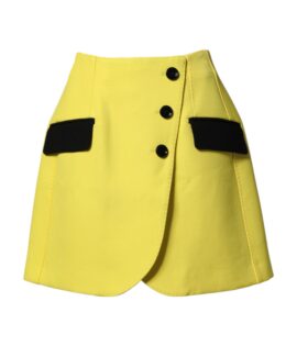 Dolce & Gabbana Yellow Wool Buttoned High Waist Mini Skirt
