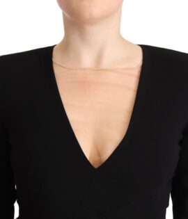 Dsquared² Black Long Sleeves Deep V-neck Mini Sheath Dress