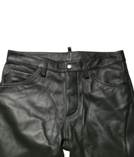 Dsquared² Black Full Grain Leather Mid Waist Trouser Pants