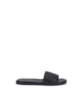 Fendi Black Calf Leather Bos Taurus Flat Sandals