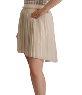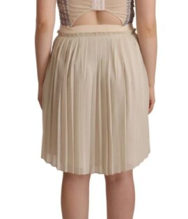 Guess Beige Checkered Pleated A-line Strapless Bustier Dress