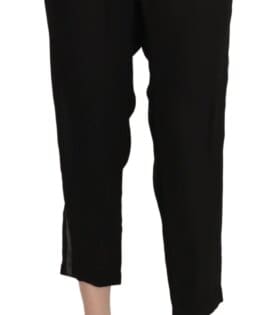 Guess Black Polyester High Waist Cropped Trousers Pants