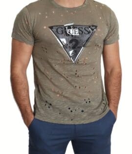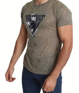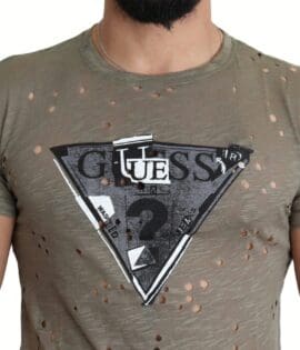 Guess Brown Cotton Stretch Logo Print Men Casual Perforated T-shirt