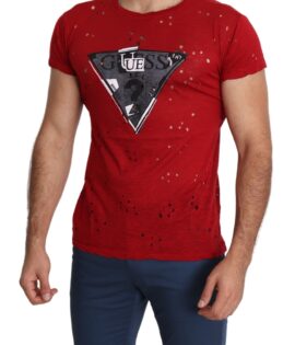 Guess Red Cotton Logo Print Men Casual Top Perforated T-shirt