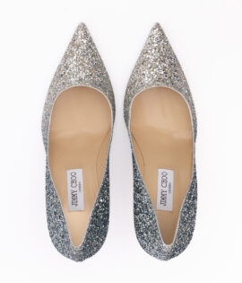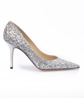 Jimmy Choo Silver Coarse Glitter Fabric Agnes Pumps