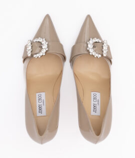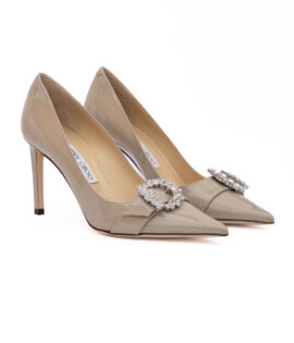 Jimmy Choo Taupe Grey Patent Leather Chery 85 Pumps