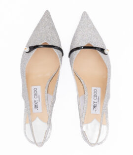 Jimmy Choo Silver Fine Glitter Amita 45 Slingback Pumps