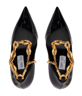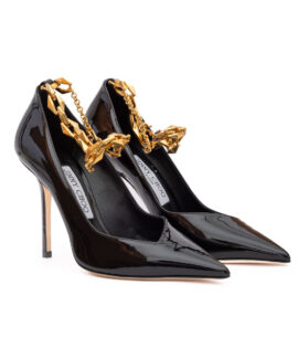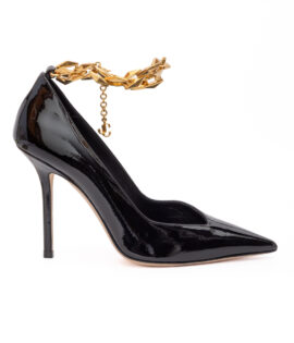 Jimmy Choo Black Patent Leather Diamond Talura 100 Pumps