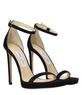 Jimmy Choo Black Leather Stiletto Heel Sandals