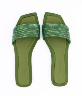 Jimmy Choo Green Satin Crystal Clovis Flat