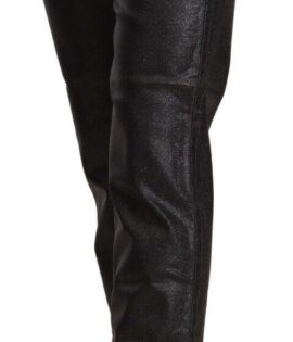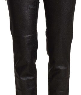 John Galliano Black Glittered Mid Waist Cotton Cropped Pants