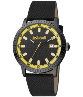 Just Cavalli Black Leather Sport Watch