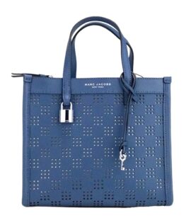 Marc Jacobs Mini Grind Blue Sea Perforated Leather Crossbody Tote Bag Purse