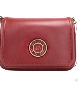 Marc Jacobs Medium Metal Signet Syrah Smooth Leather Flap Crossbody Purse Bag