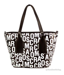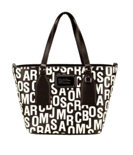 Marc Jacobs Small Black White Monogram Print Saffiano Leather Tote Crossbody Bag