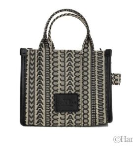 Marc Jacobs The Monogram Beige Mini Tote Woven Jacquard Canvas Crossbody Handbag