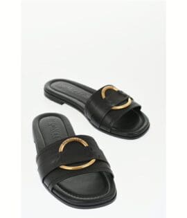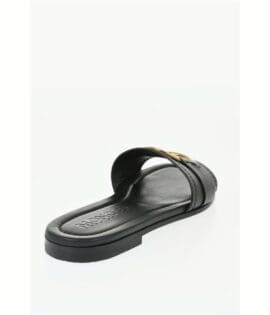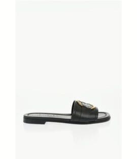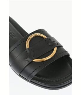 Moncler Leather Sandals with Golden Effect Detail