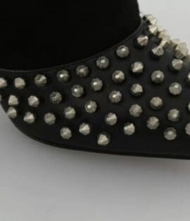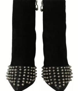 Philipp Plein Black Suede Studded Heels Ankle Boots Shoes