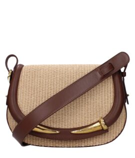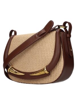 Roberto Cavalli Beige Raffia Crossbody Bag