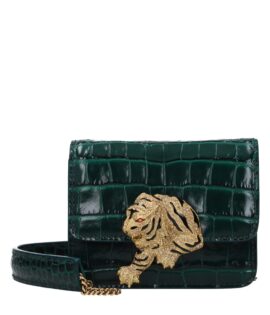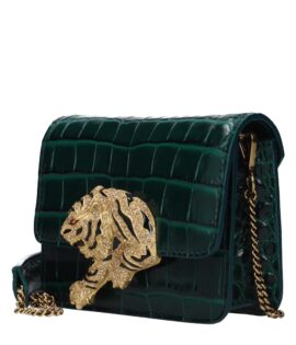 Roberto Cavalli Green Leather Clutch Bag