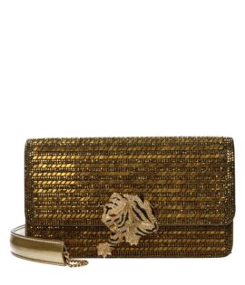 Roberto Cavalli Gold Leather Clutch Bag