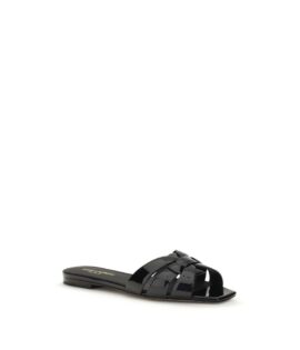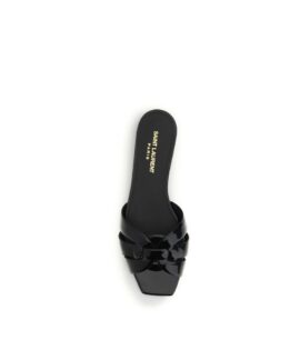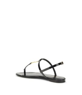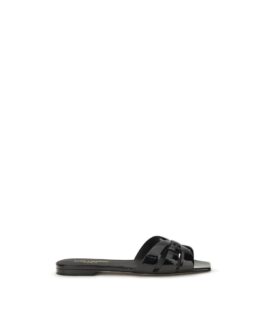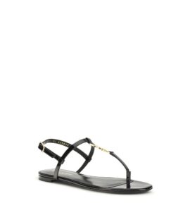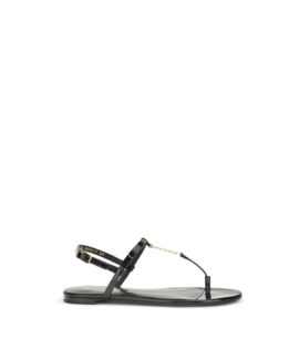 Saint Laurent Black Calf Leather Bos Taurus Flat Sandals
