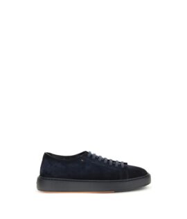 Santoni Blue Calf Leather Bos Taurus Low Top Sneakers