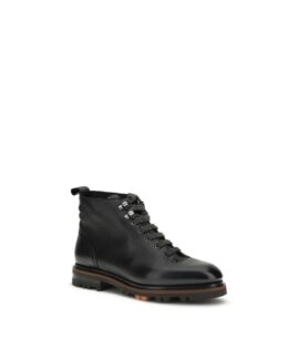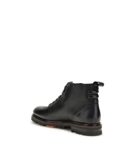 Santoni Black Calf Leather Bos Taurus Lace-Up Boots