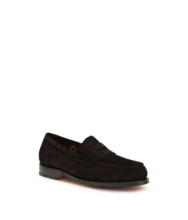 Santoni Brown Calf Leather Bos Taurus Slip-On Loafers
