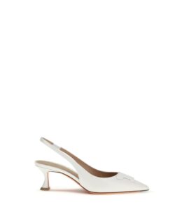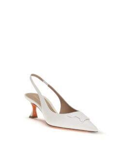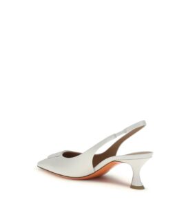 Santoni White Calf Leather Bos Taurus Mid Heel Pumps