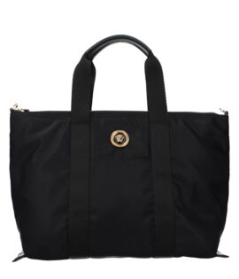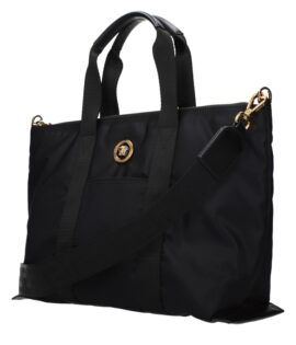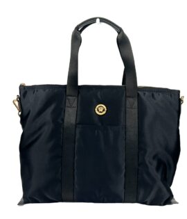 Versace Black Nylon Fabric La Medusa Shoulder Tote Bag