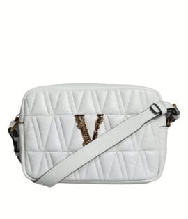 Versace White Quilted Nappa Leather Crossbody Shoulder Bag