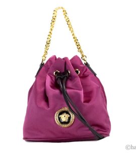 Versace Small Dahlia Nylon Medusa Pendant Bucket Chain Crossbody Bag Purse